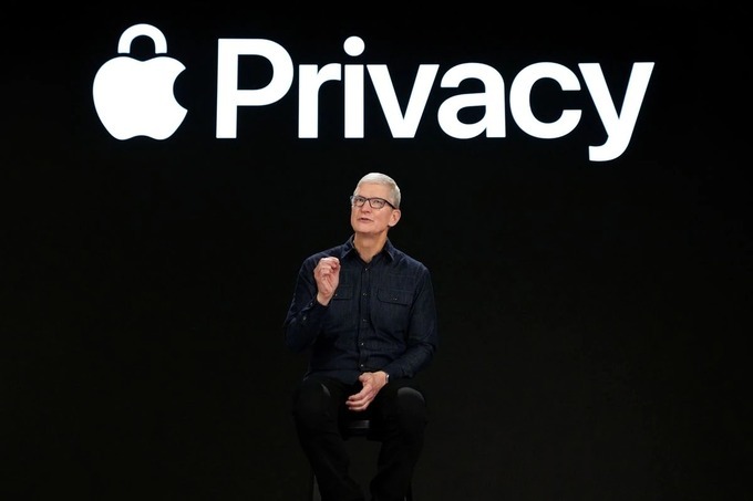 Tim Cook nói về các biện pháp mới bảo vệ quyền riêng tư của người dùng tại WWDC 2021. Ảnh: Reuters.