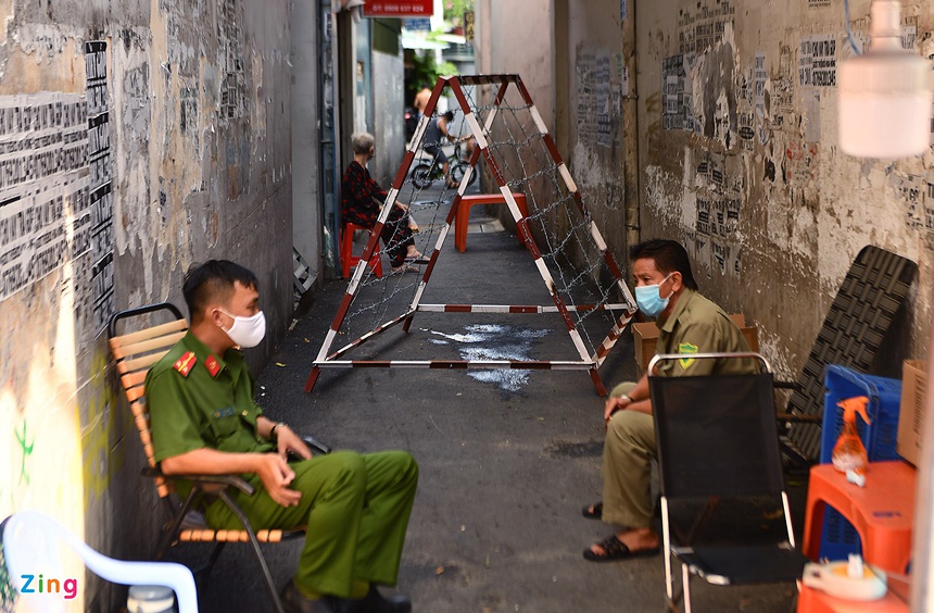 Lực lượng chức năng phong tỏa khu vực sinh sống của bệnh nhân Covid-19. Ảnh: Hoàng Giám.