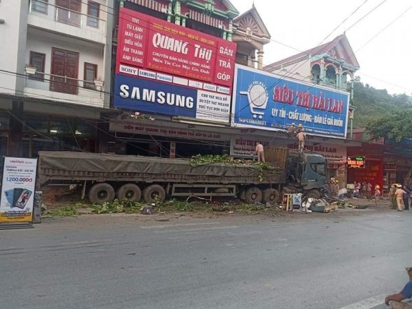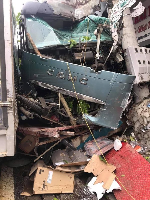 Theo đó, vì để cứu sống 2 người đi xe máy sang đường ẩu, tài xế xe đầu kéo đã đánh lái lên vỉa hè, tông vào phía trước nhà dân, gây tổng thiệt hại ước tính khoảng 800-900 triệu đồng. Cụ thể, thiệt hại gồm 13 xe máy, nhiều tủ lạnh, máy lạnh, máy lọc nước, 2 cửa cuốn, 2 cửa kính thủy lực và một cột điện 220KV.