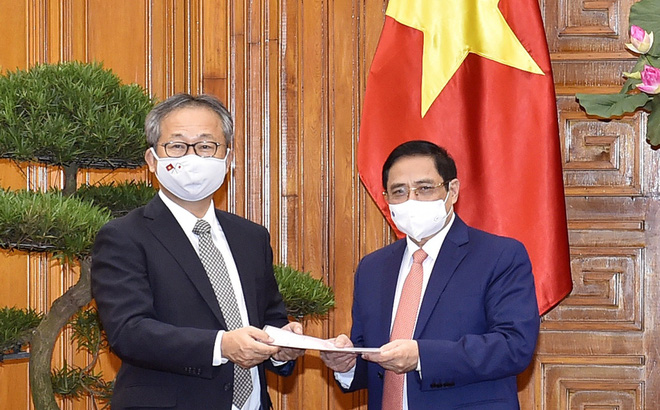 Thực hiện kết quả của các cuộc điện đàm giữa Chủ tịch nước Nguyễn Xuân Phúc, Thủ tướng Chính phủ Phạm Minh Chính với Thủ tướng Nhật Bản Suga Yoshihide, Đại sứ Nhật Bản đã chuyển thông điệp của Thủ tướng Nhật Bản Suga Yoshihide gửi Thủ tướng Chính phủ Phạm Minh Chính về việc Chính phủ Nhật Bản quyết định hỗ trợ Việt Nam 1 triệu liều vaccine để phòng chống COVID-19.