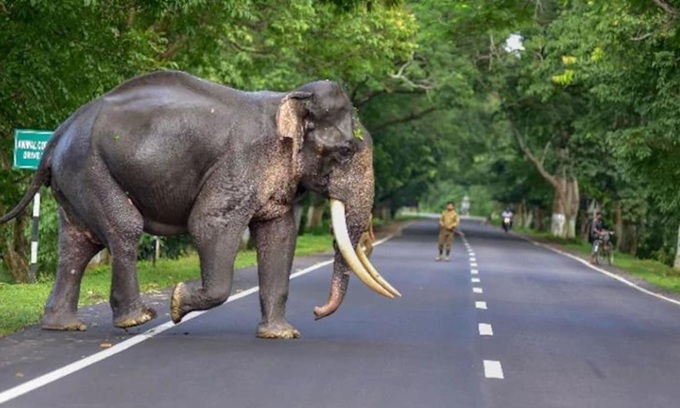 Một con voi băng qua đường ở Ấn Độ. Ảnh: PTI.
