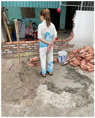 Không rõ tình huống, diễn biến cụ thể xảy ra, nhưng một pha xử lý của người phụ nữ này đã khiến bức tường của nhà hàng xóm bị sập. Cuối cùng người chồng đã phải mang dụng cụ, xi măng, gạch sang xây mới lại bức tường.