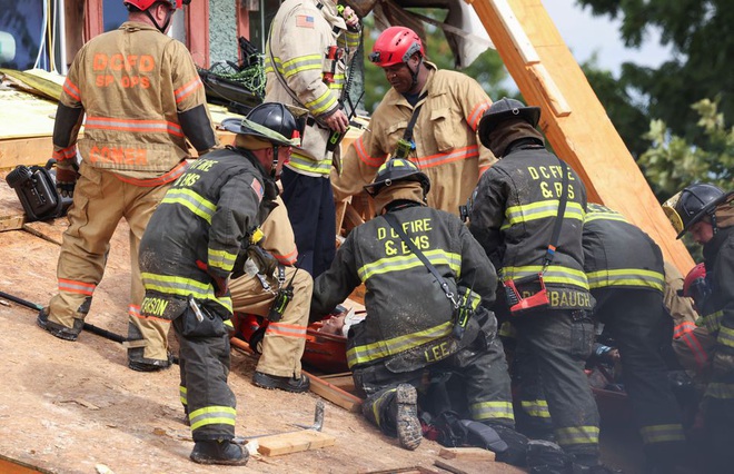 Thêm một nhà cao tầng ở Mỹ sập hoàn toàn. Tại thủ đô Washington, một tòa nhà 5 tầng đang xây dựng dở dang đã bất ngờ đổ sập sau mưa lớn khiến công nhân mắc kẹt bên trong.