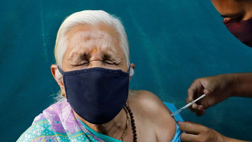 Một cụ bà được tiêm vaccine ngừa COVID-19 tại Mumbai, Ấn Độ. Ảnh: Reuters