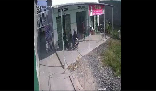 Khoảnh khắc được ghi lại từ camera cho thấy. Một nam thanh niên đang ngồi hóng mát trước nhà thì phát hiện một chiếc xe máy đang lao về phía mình.