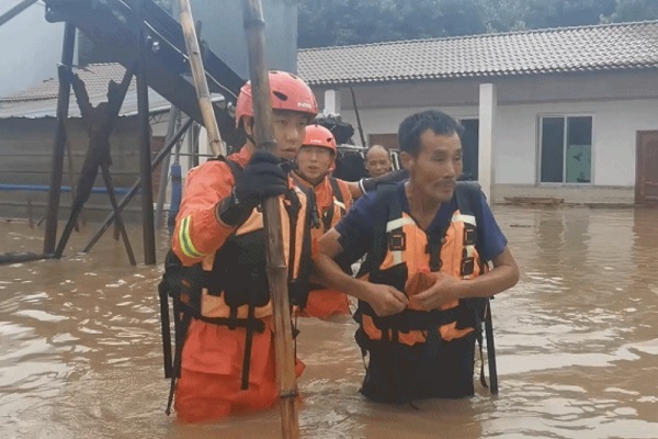 Ở tỉnh Hồ Nam, mưa lớn khiến nước của các con sông tràn bờ và gây ra cảnh úng ngập cho nhiều ngôi làng gần đó, buộc cơ quan cứu hộ phải sử dụng xuồng cao su tiếp cận khu vực ngập lụt để giải cứu người dân.
