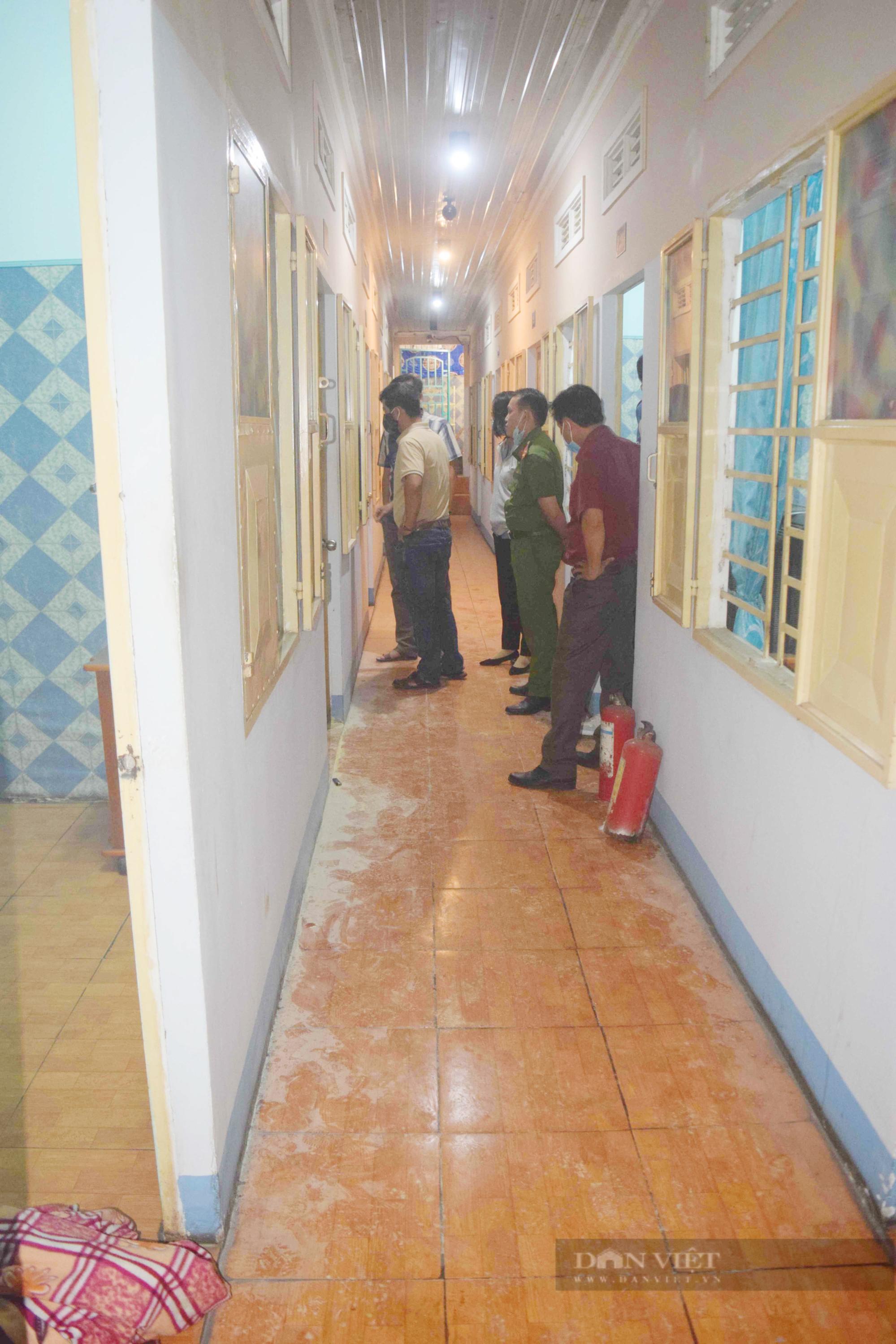 HIện trường nơi xảy ra vụ việc. Lực lượng Công an giải cứu 2 cháu nhỏ an toàn. (Ảnh: Lê Kiến).