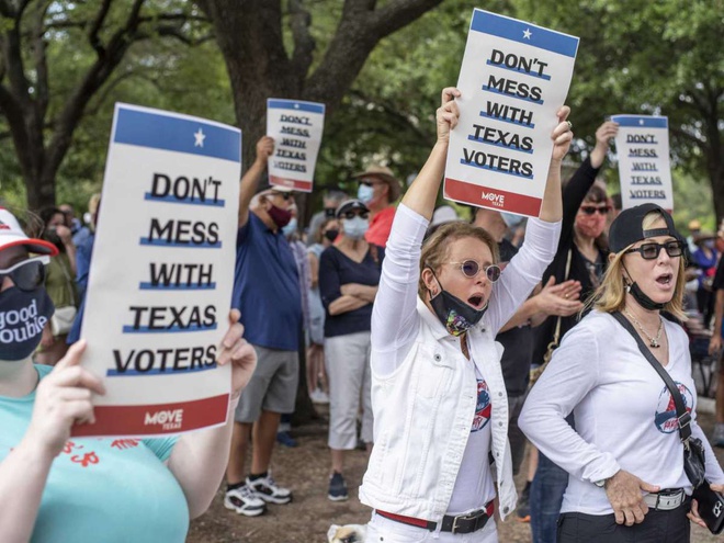 Một cuộc biểu tình chống lại nỗ lực hạn chế quyền bầu cử của người dân Texas. Ảnh: San Antonio Express-News.