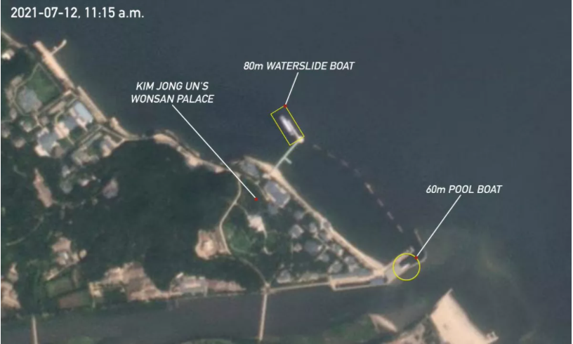 Tháng 7 được cho là thời điểm đặc biệt bận rộn tại các dinh thự sang trọng ở bờ biển phía đông của Kim Jong-un. Ngay trước trưa ngày 12/7, người ta nhìn thấy chiếc thuyền trượt nước dài 80m của Kim Jong-un đã cập cảng khu biệt thự Wonsan chính của ông.