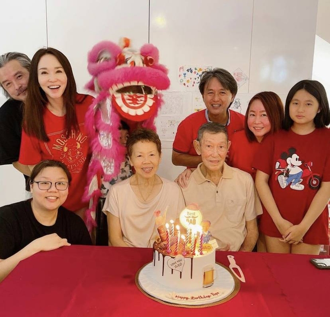 Hồi tháng 3, Văn Phương cùng đại gia đình đã tổ chức sinh nhật cho bố. Con trai cô - bé Zed - mặc trang phục múa lân cho dịp này. Cả nhà đã có một ngày rất hạnh phúc bên nhau.