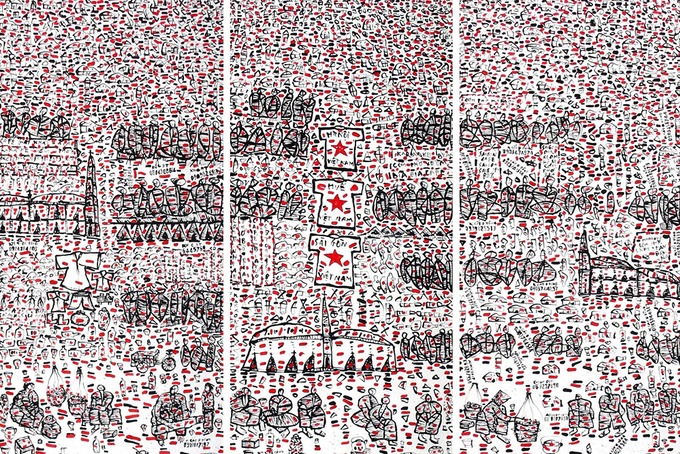 Tác phẩm "Living 3" (Không gian sống) của Lê Thánh Thư diễn tả góc nhìn của ông về khung cảnh đặc trưng của các đô thị lớn ở Việt Nam. Ảnh: Văn Bảy.