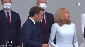 Tuy nhiên, không lâu sau đó, Đệ nhất phu nhân Pháp cũng đã đeo khẩu trang giống như chồng mình trong lúc theo dõi lễ diễu binh. Mặc dù vậy, hành động này cũng không đủ để dư luận có thể bỏ qua cho thái độ trước đó của bà. Bên cạnh đó, bà Brigitte Macron cũng bị soi chi tiết ôm hôn khách mời trong khi không đeo khẩu trang, vi phạm quy định giữ khoảng cách an toàn trong mùa dịch.