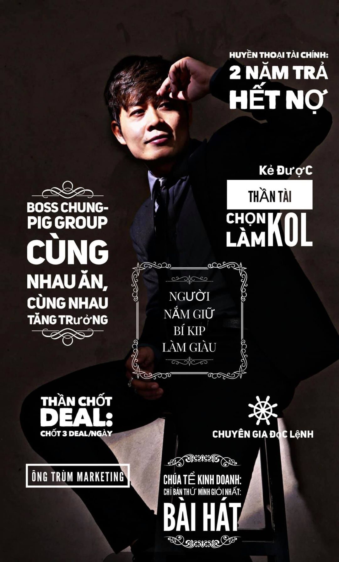 Mới nhất, nhạc sĩ Nguyễn Văn Chung cũng 'lên đồ' để nói chuyện 'làm tiền' đang nóng trên mạng xã hội. Chủ nhân loạt hit đình đám trong Vbiz chọn bức hình mặc vest và khiến dân tình thích thú khi tung ra loạt keyword vừa phảng phất 'chuyên gia tài chính' vừa hài hước như: Huyền thoại tài chính 2 năm trả hết nợ; Kẻ được thần tài chọn làm Kol; Boss Chung - Pig Group - Cùng nhau ăn, cùng nhau tăng trưởng; Thần chốt deal: chốt 3 deal/ngày; Chuyên gia đọc lệnh, Người nắm giữ bí kíp làm giàu…