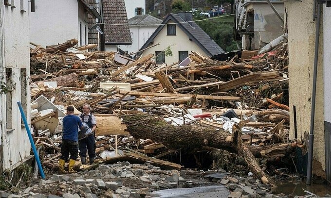 "48 giờ qua là một cơn ác mộng. Chúng tôi giờ đây cứ rảo quanh khu vực này chứ không biết làm gì hơn", Schloesser, thợ làm bánh ở thị trấn Schuld ở quận Ahrweiler, bang Rhineland-Palatinate, phía tây nước Đức, vừa chia sẻ, vừa tuyệt vọng nhìn đống kim loại, kính vỡ và cây gỗ đổ nát đang chất đống trước cửa tiệm gia đình.