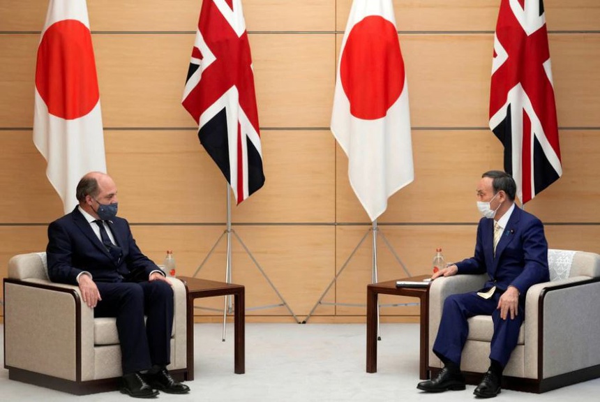 Bộ trưởng Quốc phòng Anh Ben Wallace và Thủ tướng Nhật Bản Yoshihide Suga trong cuộc gặp tại Tokyo, Nhật Bản vào ngày 20/7. Ảnh: Reuters.