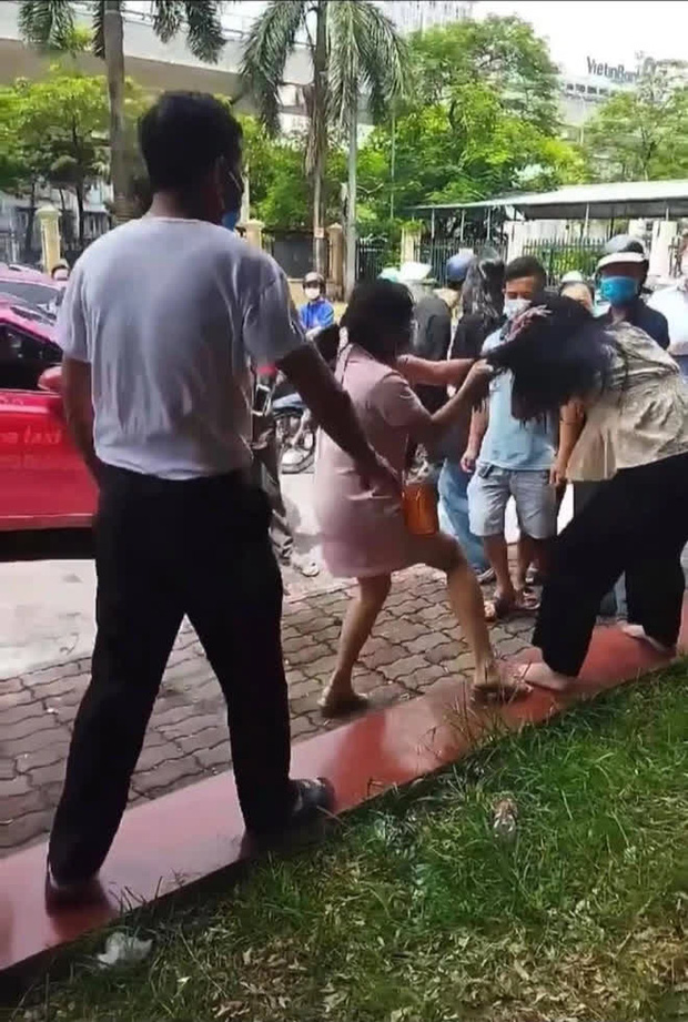 Chưa dừng lại ở đó, cô gái tiếp tục quay ra cãi nhau tay đôi với chị vợ. Thấy thái độ phách lối, không biết sai của cô nhân tình, người vợ đã không kìm được sự giận dữ lao tới giật tóc, đạp liên tiếp vào người.