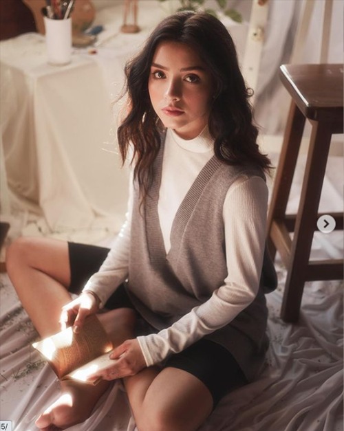 Valentina mặc áo voan bên trong corset để tạo nét nữ tính.
