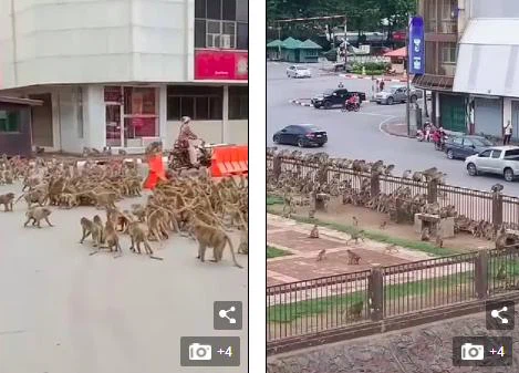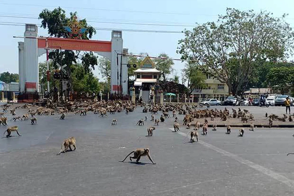Trước khi đại dịch xảy ra, khoảng 6.000 con khỉ sinh sống ở Lopburi và đây cũng là điều thu hút du khách đến với thành phố có 750.000 dân này. Tuy nhiên, việc phong tỏa đã ngăn du khách tới đây, khiến những con khỉ không còn nguồn thức ăn. Đói khát khiến lũ khỉ hung dữ, buộc dân địa phương phải vật lộn kiểm soát chúng.