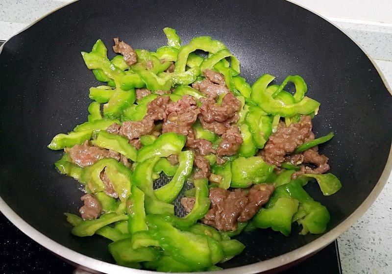 Khổ qua có vị đắng, không phải ai cũng ăn được nhưng lại là loại quả bổ dưỡng. Nếu đem xào với thịt bò thì sẽ trở thành món ăn cực kỳ hấp dẫn. Miếng thịt bò dai dai, ngọt mềm ăn cùng với khổ qua thái mỏng, có vị đắng nhẹ sẽ tạo thành món ăn có mùi vị ngon khó cưỡng.