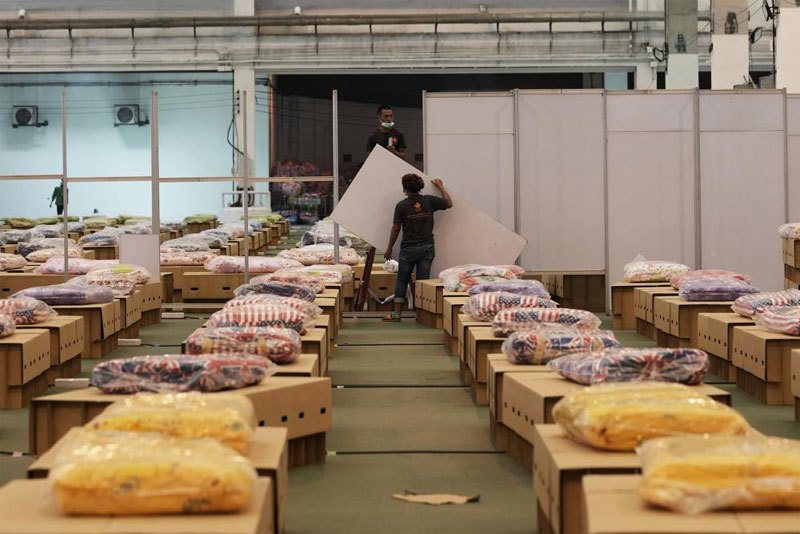 Theo hãng tin AP, các công nhân đã chạy đua với thời gian để thiết lập bệnh viện tại sân bay Don Mueang. Tổng số 1.800 giường bằng bìa cát-tông đã được dựng lên, được trang bị nệm và gối để sẵn sàng đón bệnh nhân.