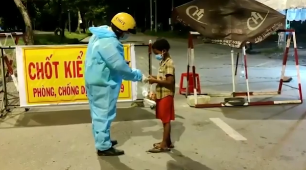 Tổ công tác Trạm CSGT Tân Túc đang làm nhiệm vụ tại chốt kiểm soát phòng, chống dịch Covid-19 tại giao lộ Nguyễn Văn Linh - quốc lộ 1 (huyện Bình Chánh, TP HCM) thì phát hiện một bé trai đi lang thang trên đường.