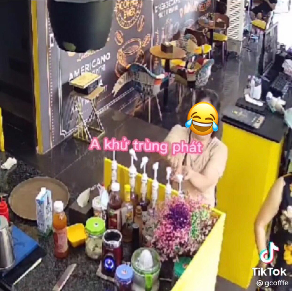 Dẫu vậy cũng chính vì thói quen với chai nước rửa tay mà mới đây, một đoạn clip được trích xuất từ camera an ninh của một tiệm cà phê ở Lào Cai đã khiến dân mạng bật cười.