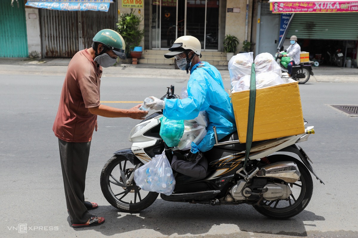 Hơn hai tháng nay, ông Tạ Anh Dũng chạy xe khắp nơi đi phát cơm nước cho những người khó khăn từ sáng đến chiều tối.