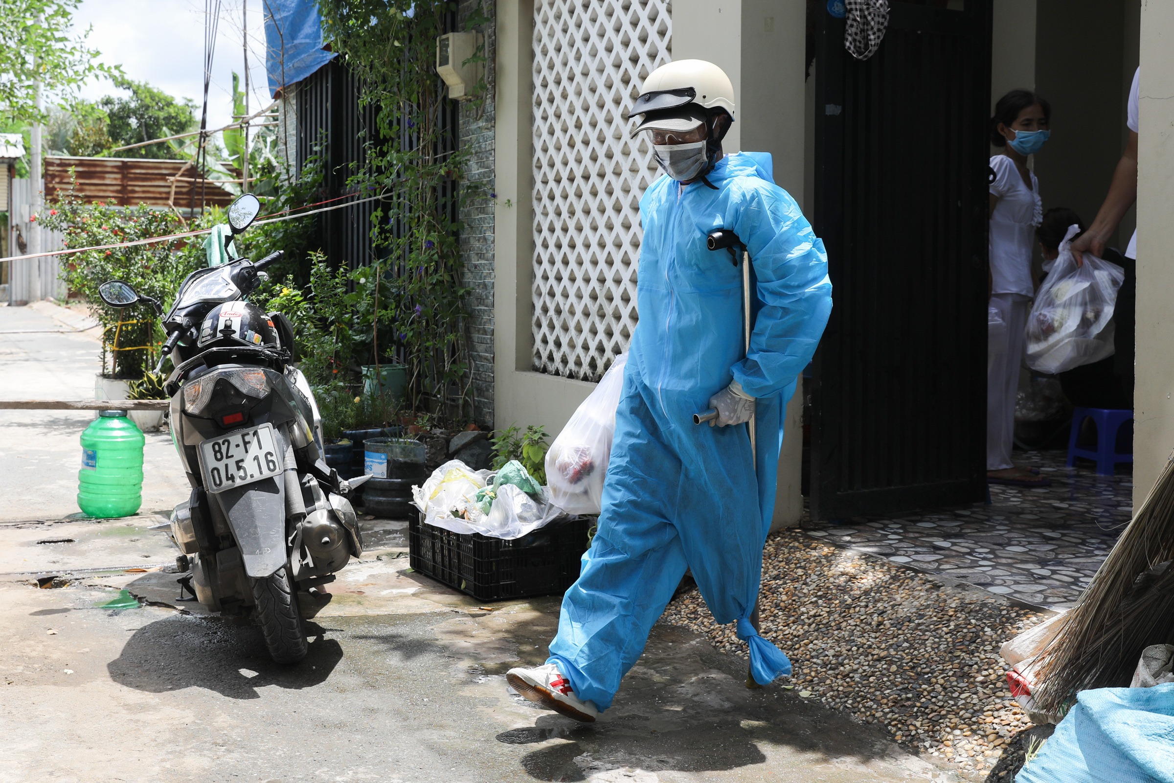 Trên khuôn mặt in vết hằn của khẩu trang và kính bảo hộ khi phải mặc hàng giờ, ông Dũng nói: "Sau mỗi ngày đi phát, tôi đều cảm thấy thiếu do còn rất nhiều người nghèo cần giúp đỡ. Giờ chỉ mong thêm nhiều người hỗ trợ để chúng tôi luôn đủ cơm lo cho bà con".