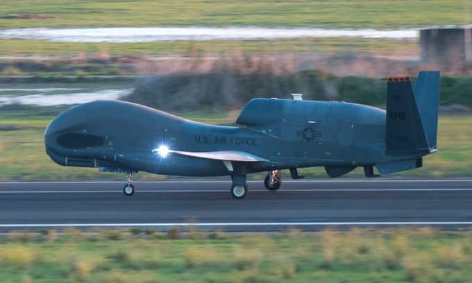 Trinh sát cơ RQ-4 Mỹ cất cánh tại Italy năm 2018. Ảnh: USAF.