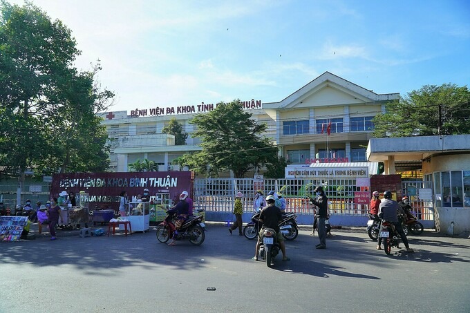 Bệnh viện tỉnh Bình Thuận bị phong tỏa do nữ bác sĩ khoa sản nhiễm nCoV, hôm 24/6. Ảnh: Việt Quốc
