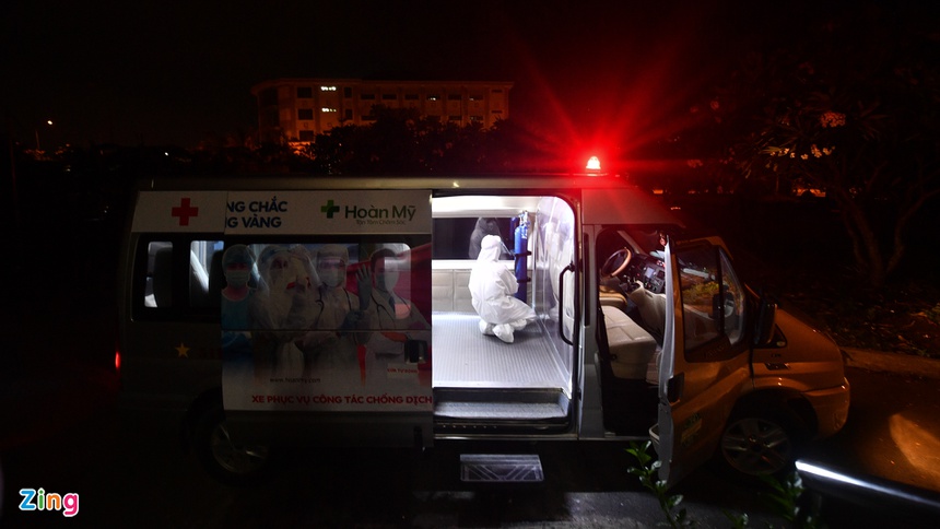 Cấp cứu bệnh nhân Covid-19 ngay trong đêm tại huyện Bình Chánh. Ảnh: Duy Hiệu.