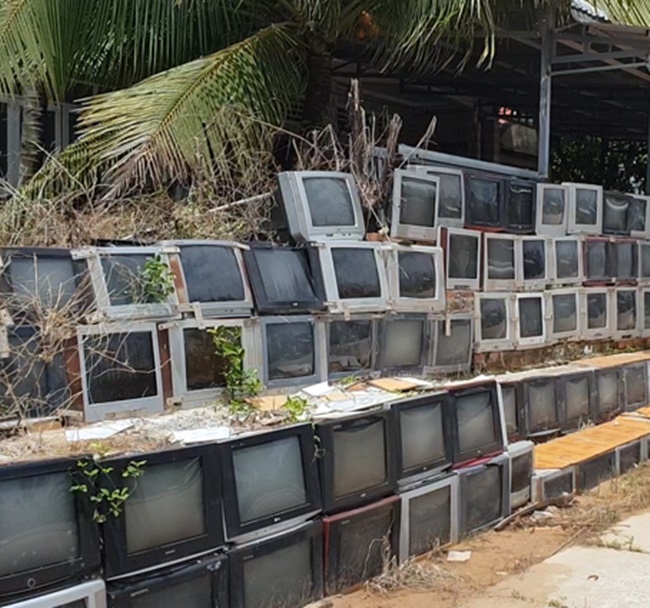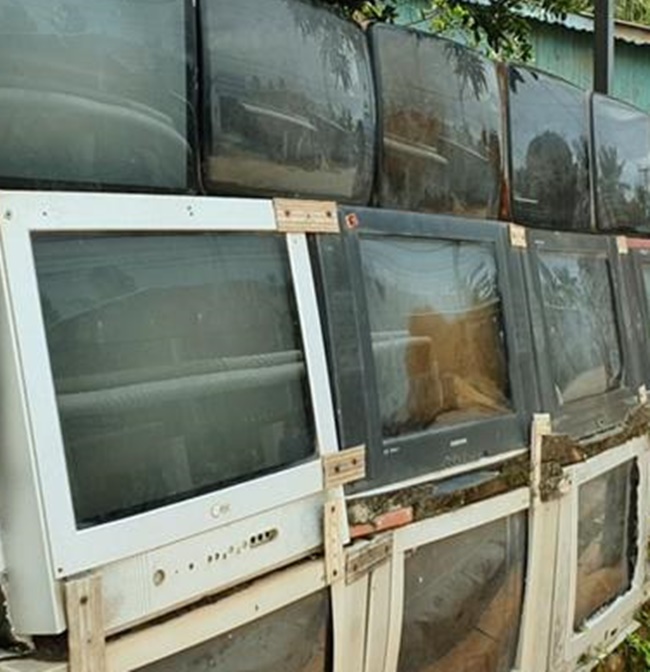 Toàn bộ vật liệu dùng làm hàng rào là vỏ tivi đã cũ.