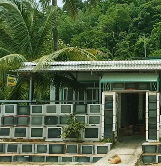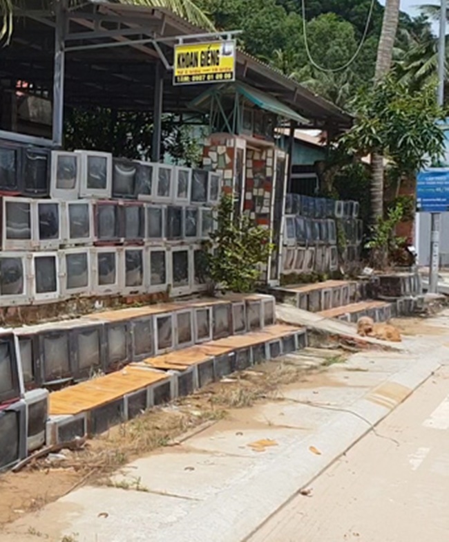 Người chụp bức ảnh năm đó cho biết trên đường đi ra cáp treo Hòn Thơm đã tìm thấy căn nhà. Các vỏ tivi được xếp thành 5 tầng, nằm ở 2 bên cổng.