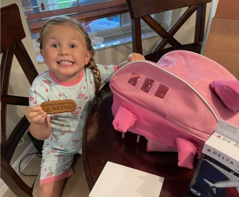 Cô bé 3 tuổi được gửi món quà bất ngờ khi trùng tên với hãng bay Delta Air Lines. Ảnh: Delta Air Lines.