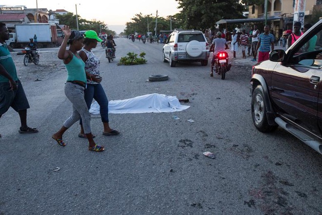 Haiti vẫn bị rung chuyển bởi các rung chấn sau động đất, với vụ mạnh nhất tương đương 5,8 độ richter diễn ở phía tây Haiti vào sáng 15/8. Trong ảnh: Một thi thể nằm trên đường phố Les Cayes, Haiti hôm 14/8.