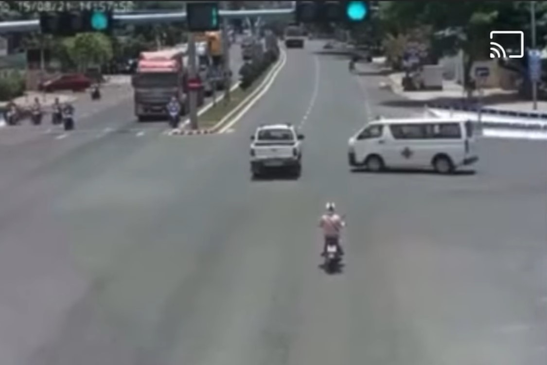 Theo hình ảnh được camera an ninh ghi lại được, thời điểm nói trên, một xe bán tải màu trắng đang tranh thủ băng qua giao lộ Nguyễn Hữu Thọ - Cách Mạng Tháng 8 khi đèn xanh báo còn khoảng 4 giây. Lúc này, một xe cứu thương đang làm nhiệm vụ bất ngờ lao qua khu vực ngã tư nói trên với tốc độ cao và đâm ngang thân xe bán tải.