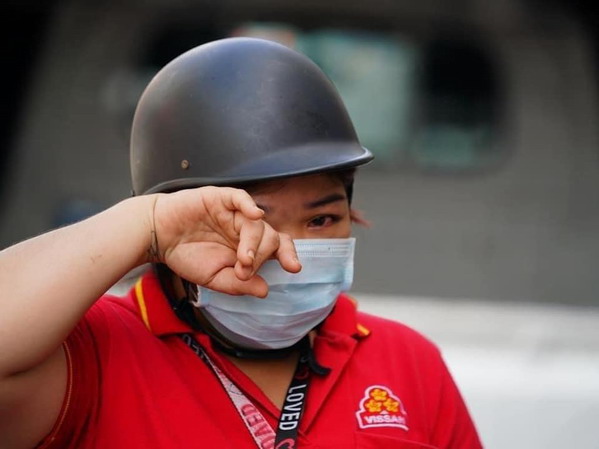 Chị Ngọc Minh (nhân viên Vissan) còn mặc chiếc áo đồng phục đỏ, đeo thẻ nhân viên vội vàng chạy từ Q.1 sang Q.Phú Nhuận. Khi bị trật tự đô thị yêu cầu dừng xe, chị Minh giải thích do nhà có công chuyện nên phải vội vàng chạy về.