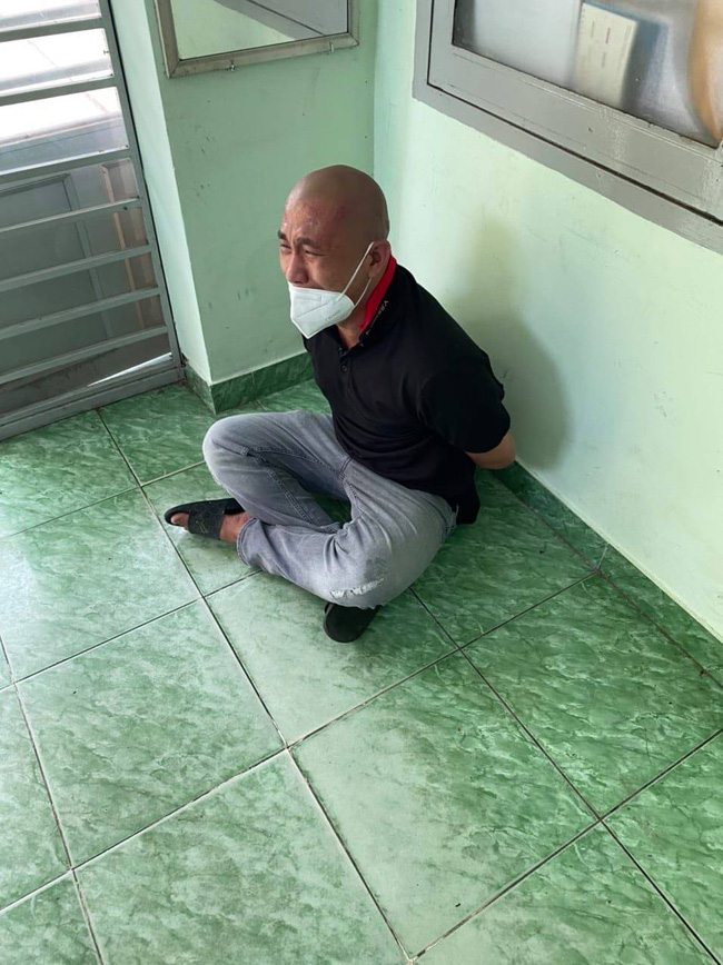 Khi được đưa về trụ sở công an, người đàn ông này hết hung hăng, khóc như mưa xin tha.