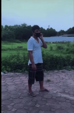 Những tưởng người đàn ông đã ngoan ngoãn, ngồi yên chịu phạt thì vài phút sau, anh này đã đứng bật dậy, chạy thật nhanh về phía đường quốc lộ. 2 đồng chí dân quân ở phía sau ngay lập tức đã chạy rượt đuổi theo sát nút.