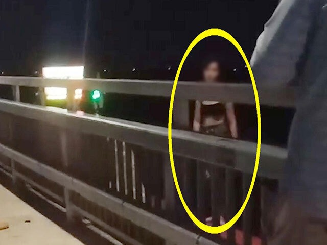 Thiếu nữ đứng ngoài lan can cầu sau đó ngã người rơi xuống sông Hồng.