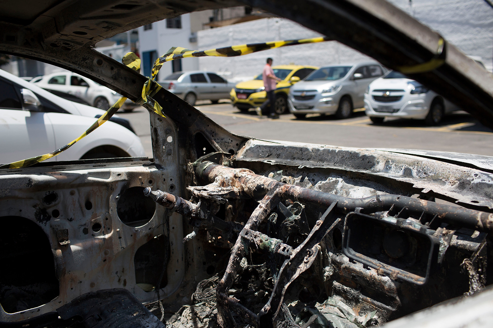 Chiếc xe cháy rụi và thi thể của đại sứ Hy Lạp Kyriakos Amiridis được tìm thấy tại một khu phố hỗn loạn ở Brazil. Ảnh AP.