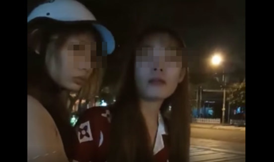 Thấy lực lượng chức năng lấy điện thoại quay lại làm bằng chứng, cô gái lấy tay và áo chống nắng che mặt, cố lẩn tránh ống kính, cáu gắt quát: "Anh quay vừa thôi anh ơi, cứ quay mãi thế? Ai mà giơ cái mặt ra cho anh quay mãi".
