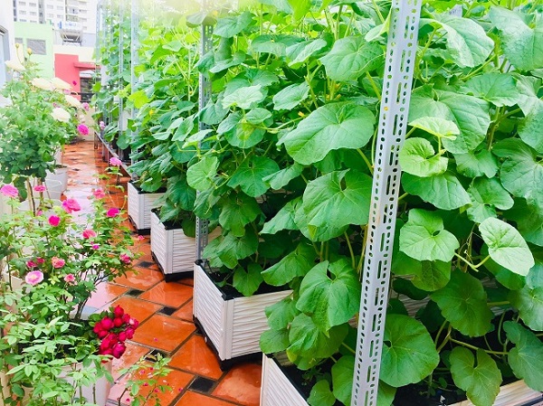 Chị Ánh cho biết, với những ngày giãn cách toàn xã hội để phòng chống dịch Covid-19 thì khu vườn trên sân thượng của chị như một “gia tài vô giá”. Bởi vì, đây không chỉ là nơi cung cấp thực phẩm, rau củ cho cả nhà mà còn là nơi cả gia đình có thể tập thể dục, hít thở bầu không khí trong lành khiến việc ở nhà trở nên ý nghĩa và bớt nhàm chán hơn.