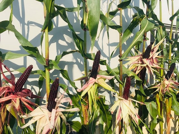Ngô tím được chị Ánh trồng trên sân thượng.