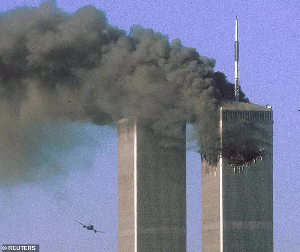 Lúc 9 giờ 3 phút ngày 11-9-2001, chuyến bay của hãng hàng không United Airlines lao vào tòa tháp phía Nam Trung tâm Thương mại Thế giới. Ảnh: Reuters