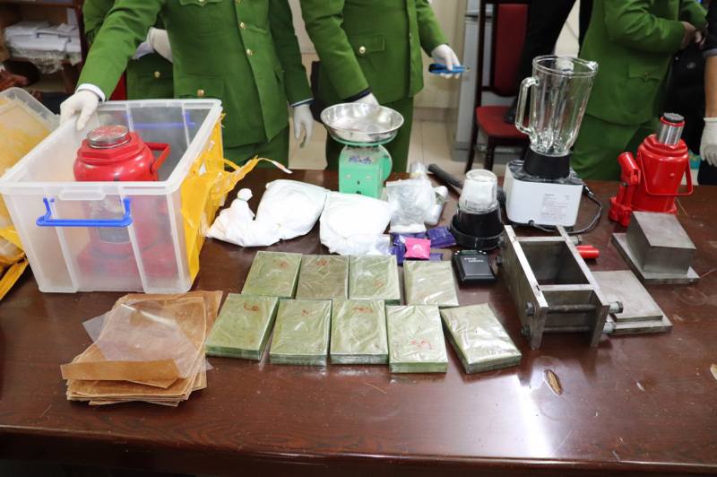 Tang vật lực lượng công an thu giữ trong vụ án gồm 12 bánh heroin; 860,77 gram Ketamine; 248,83 gram Methamphetamine; 1 khẩu súng K54; 7 viên đạn; 2 cân điện tử dính heroin; 2 khuôn ép bánh heroin; 1 máy ép thủy lực; cùng nhiều dụng cụ dùng để nghiền, ép và bọc các bánh heroin thành phẩm; 200 triệu đồng và các tài liệu, vật chứng khác có liên quan…