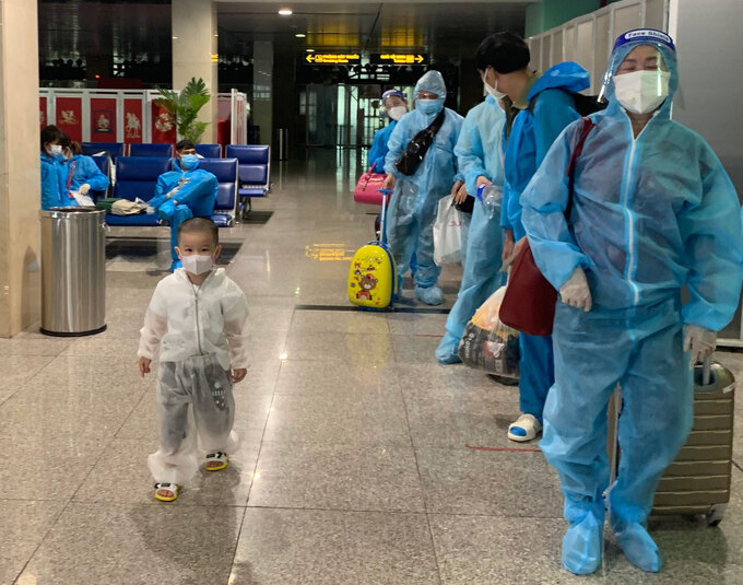 Tại sân bay Nội Bài, cán bộ các huyện, thành phố mặc trang phục bảo hộ cấp 4 chờ sẵn, hướng dẫn ra xe. Các chuyến xe sẽ chạy thẳng từ sân bay Nội Bài về khu cách ly tập trung của huyện, thành phố, không dừng đỗ dọc đường. Người dân cư trú ở huyện nào về nơi đó cách ly tập trung 14 ngày và thêm 7 ngày tại nhà.