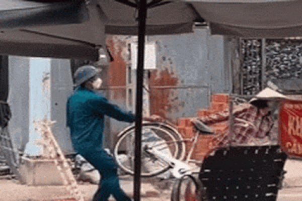 Thấy vậy, một anh dân quân tự vệ trực chốt đã chạy ra ngăn cản nhưng người này vẫn liên tục la hét om sòm. Anh dân quân càng cố giữ lấy yên sau xe đạp thì người phụ nữ cố tình giật lại xe để vượt chốt.