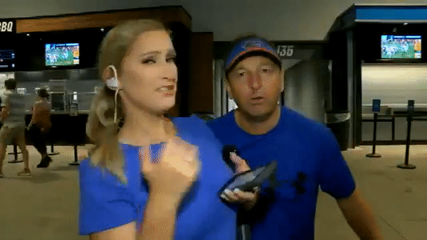 Cụ thể, nữ phóng viên dựng máy quay ở khu vực chờ bên trong sân vận động Bank of America (North Carolina, Mỹ) và tiến hành đưa tin khi trận đấu kết thúc. Lúc đó, Georgia vừa giành chiến thắng 10-3, nhiều người hâm mộ đội tuyển này phấn khích ăn mừng khi rời sân vận động.