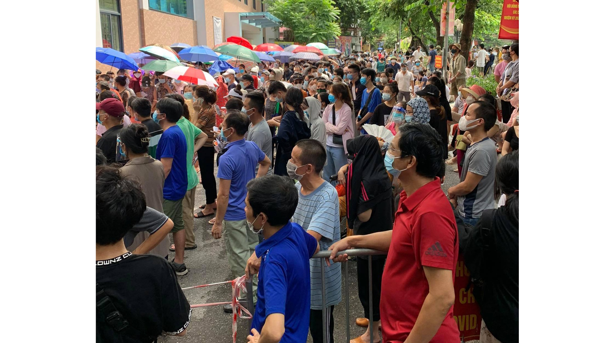 Nhiều người dân P.Khương Thượng (Q.Đống Đa, Hà Nội) xếp hàng chờ cả buổi chiều qua nhưng chưa đến lượt tiêm vắc xin. Sáng sớm nay (9.9) lại xếp hàng và chen chúc chờ đợi, song tới 10 giờ hơn thì được thông báo đã hết vắc xin.Chị N., sống tại P.Khương Thượng, cho biết nhận được phiếu đăng ký tiêm vắc xin phòng Covid-19 do phường cấp hôm qua, 8.9. Sáng sớm nay chị và người nhà ra xếp hàng tại điểm tiêm tại Trường tiểu học Tam Khương, số 4 Khương Thượng thì tá hoả vì hàng dài xếp hàng chen lấn, không đảm bảo khoảng cách.